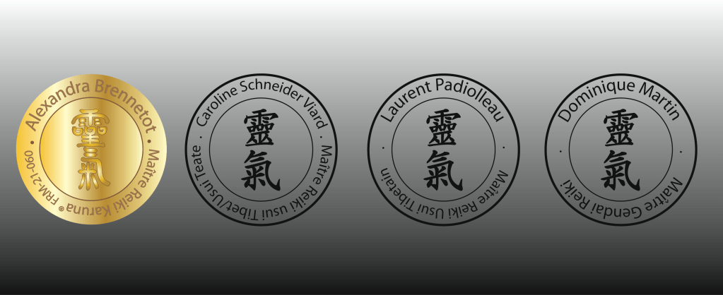 De mon métier de graphiste-infographiste je tire profit pour créer des éléments utiles aux reikika. Dans ce cas, à l’origine, je les ai pensé pour moi, et en ai proposé à deux amis maîtres reiki en test qui ont adoré et m’ont encouragé à les proposer à toutes et à tous. Ils ont pour but de personnaliser vos courriers, vos factures ou vos certificats si vous êtes maîtres enseignants ou encore pour ajouter à vos visuels de communication web si vous utilisez un compte Instagram par exemple. Ils sont un peu à l’image des tampons à oblitérer de La Poste pour les tampons numériques (ils n’ont pas de fond donc tout ce qui est sur le visuel dessous apparait) ou un peu comme un sticker (autocollant) qui lui est couvrant. Place aux images, à des exemples, pour mieux comprendre de quoi il s’agit :
