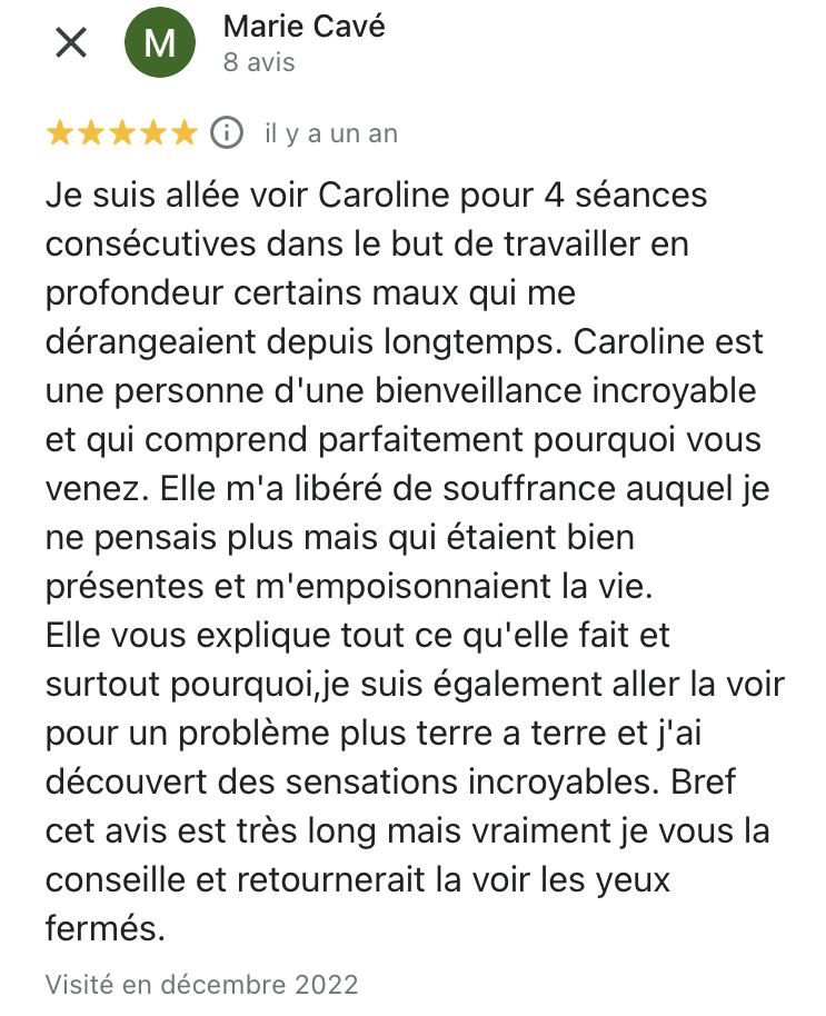 Dans la section « formation » du site vous pourrez voir les différents certificats qui attestent des formations que j’ai suivies et dans la section « l’univers de votre praticienne » vous pourrez lire quelques lignes qui parlent de moi.