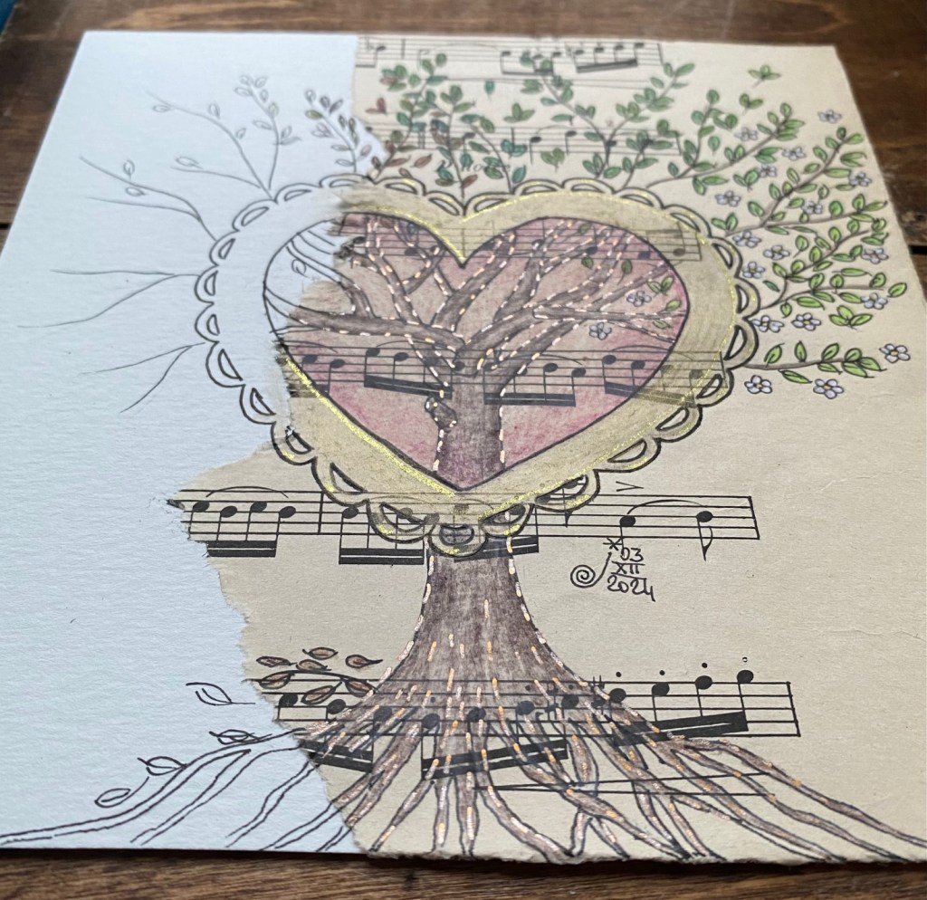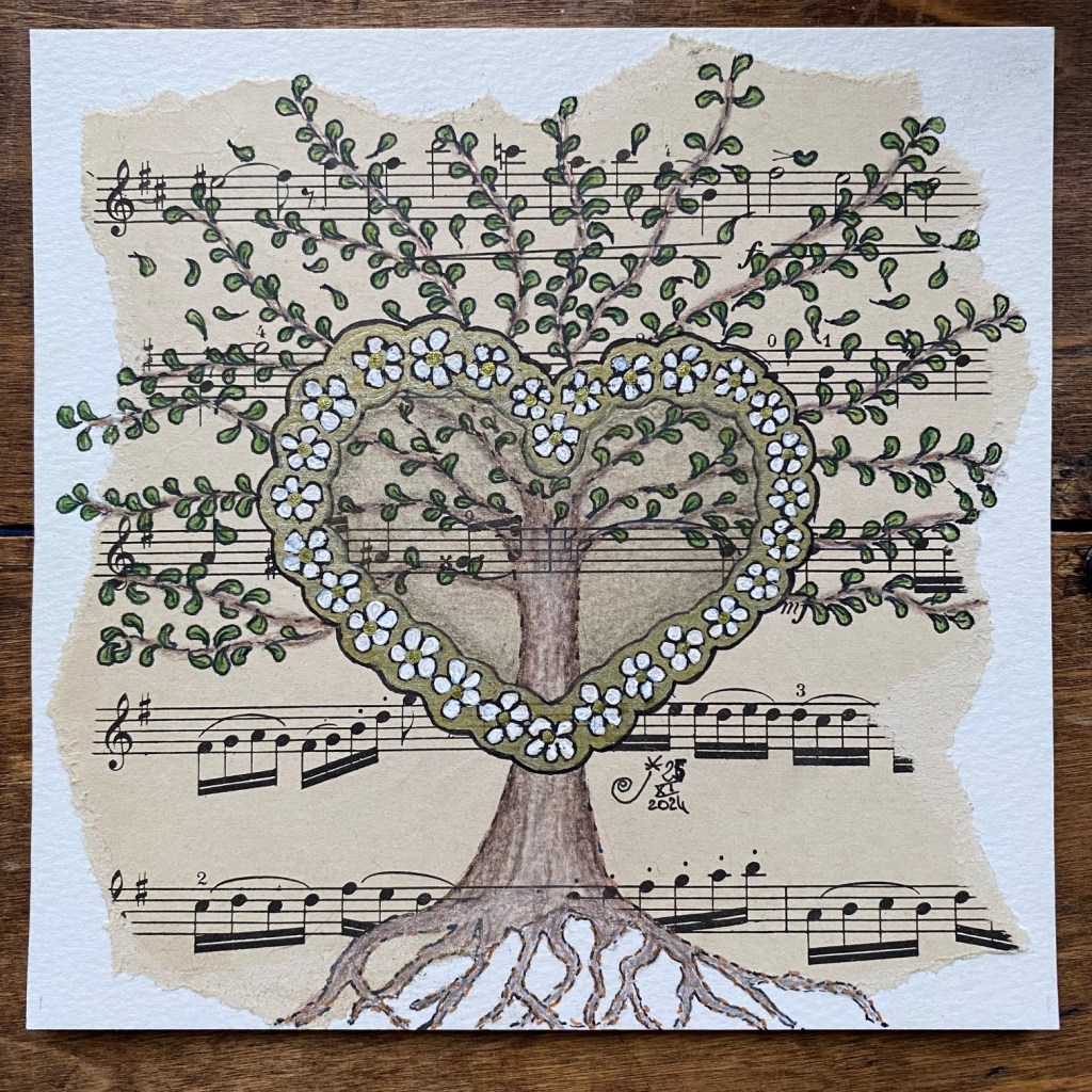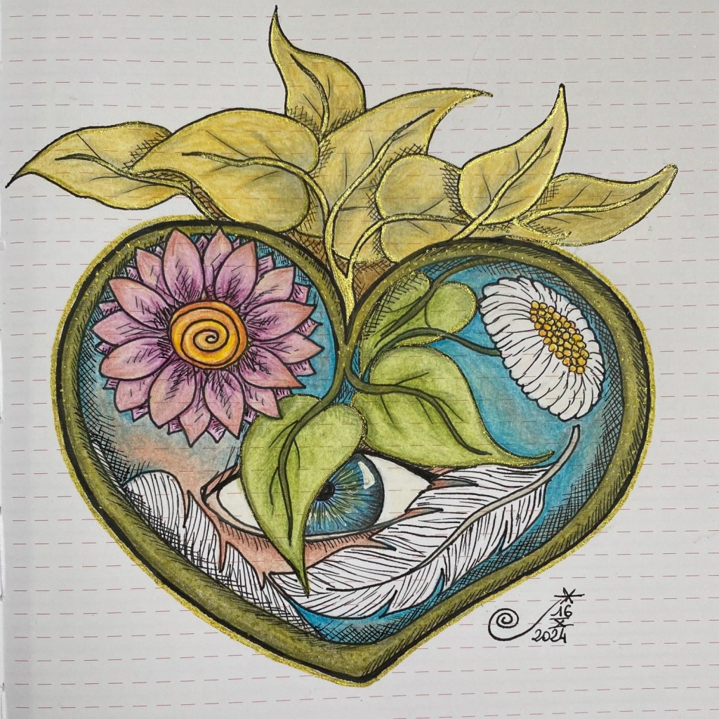 Quoi de mieux que d’exposer ici mes « dessins vibratoires « . Ils ont pour thème commun la gratitude représentée par la forme du coeur et/ou l’arbre de vie pour la connexion à la Terre Mère et au Grand Univers. Les plantes sont considérées comme des messagers entre les mondes spirituels et les mondes matériels.