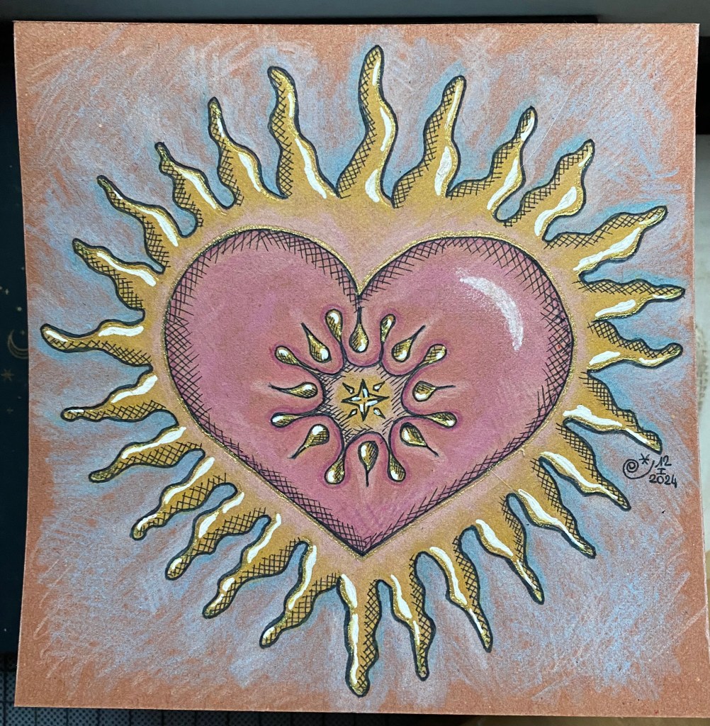 Ce coeur solaire enferme une graine de vie qui ne demande qu’à germer. Cette graine est dans son écrin, bien à l’abri du coeur qui rayonne une douce chaleur dans un univers glacé. Faites briller votre coeur, votre graine qui représente votre projet, prendra vie.