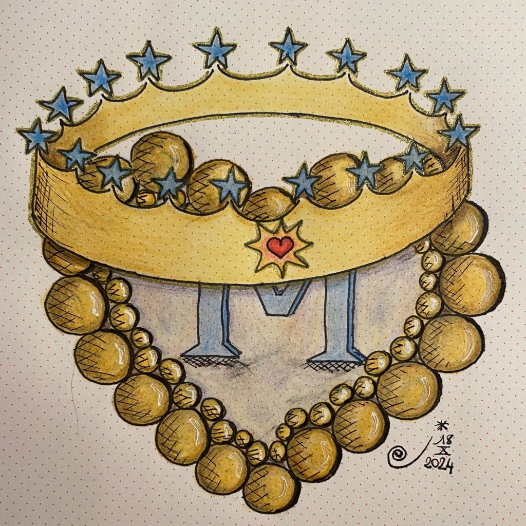 M comme Marie, un coeur tout en rondeurs, enveloppant comme son énergie d’amour. Une invitation à s’en remettre à elle, à demander son soutien.