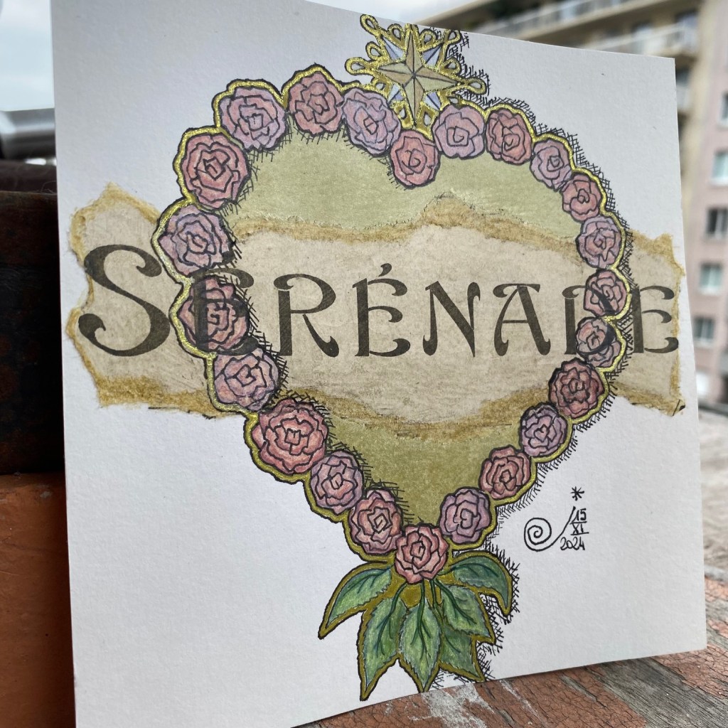Quand je dessine, c’est un moment « suspendu », un moment où je suis totalement dans l’instant présent, où je me laisse guider, où je mets mon mental de côté. Un processus de création en total lâché prise. Au moment où je m’installe à mon bureau avec mes supports papiers, mes crayons de couleur, mes stylos à encre calibrés, mes autres stylos, crayons, feutres aux couleurs métallisées, je ne sais pas vraiment ce que je vais dessiner. Je ne fais pas de planches de croquis préparatoires, je me lance, me jettes à l’eau avec un léger crayonné de la forme générale. À partir de ce moment là, le processus créatif est d’une grande fluidité, tout est clair, je sais où je vais sans le savoir consciemment. Chacun de ces moments sont source de gratitude et de plénitude.