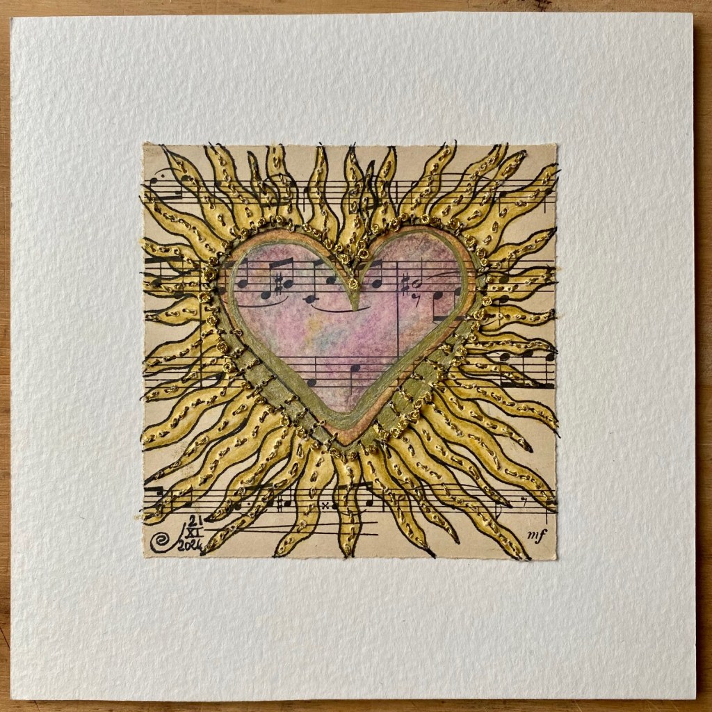 Une invitation à ne pas cacher votre coeur cousu à petits points de suture au fil d’or pour l’aider à reprendre force et courage, à le gonfler d’amour de vous même et des autres.